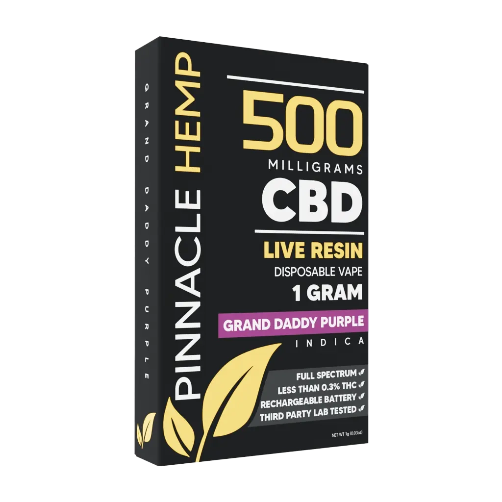 Immerse yourself in tranquility with our 1g Grand Daddy Purple Indica Live Resin CBD Vaporizer. Grand Daddy Purple strain is the perfect choice for unwinding after a long day. Our live resin extraction process captures the full spectrum of cannabinoids and terpenes from this renowned strain.