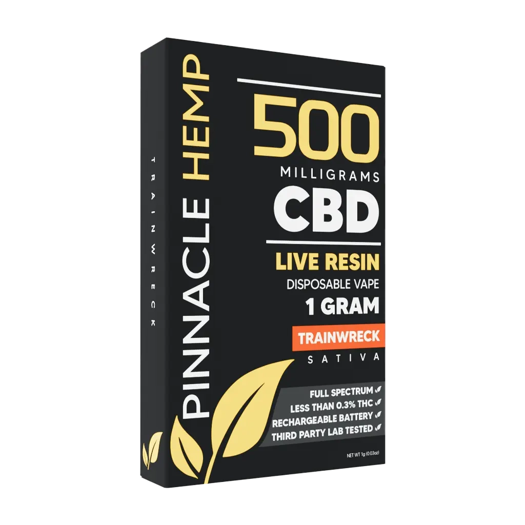 Our 500mg CBD Disposable – Trainwreck (Sativa) offers a smooth, uplifting experience inspired by the classic strain. This sativa vape delivers bold notes of pine and citrus.. Perfect for daytime use, it’s designed to keep you focused – without any psychoactive effects.