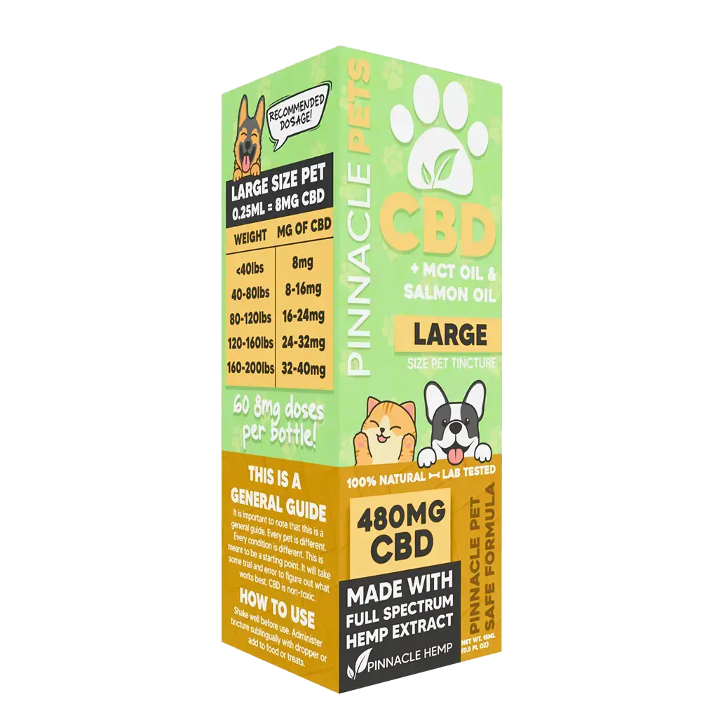 Pinnacle Hemp’s all-natural full-spectrum CBD tincture now comes specially formulated for pets! Made with Salmon and MCT oil, this is the most convenient and effective way to provide your furry friend with the potential health benefits of CBD. We offer strength options from 120mg, 240mg,  and 480mg.