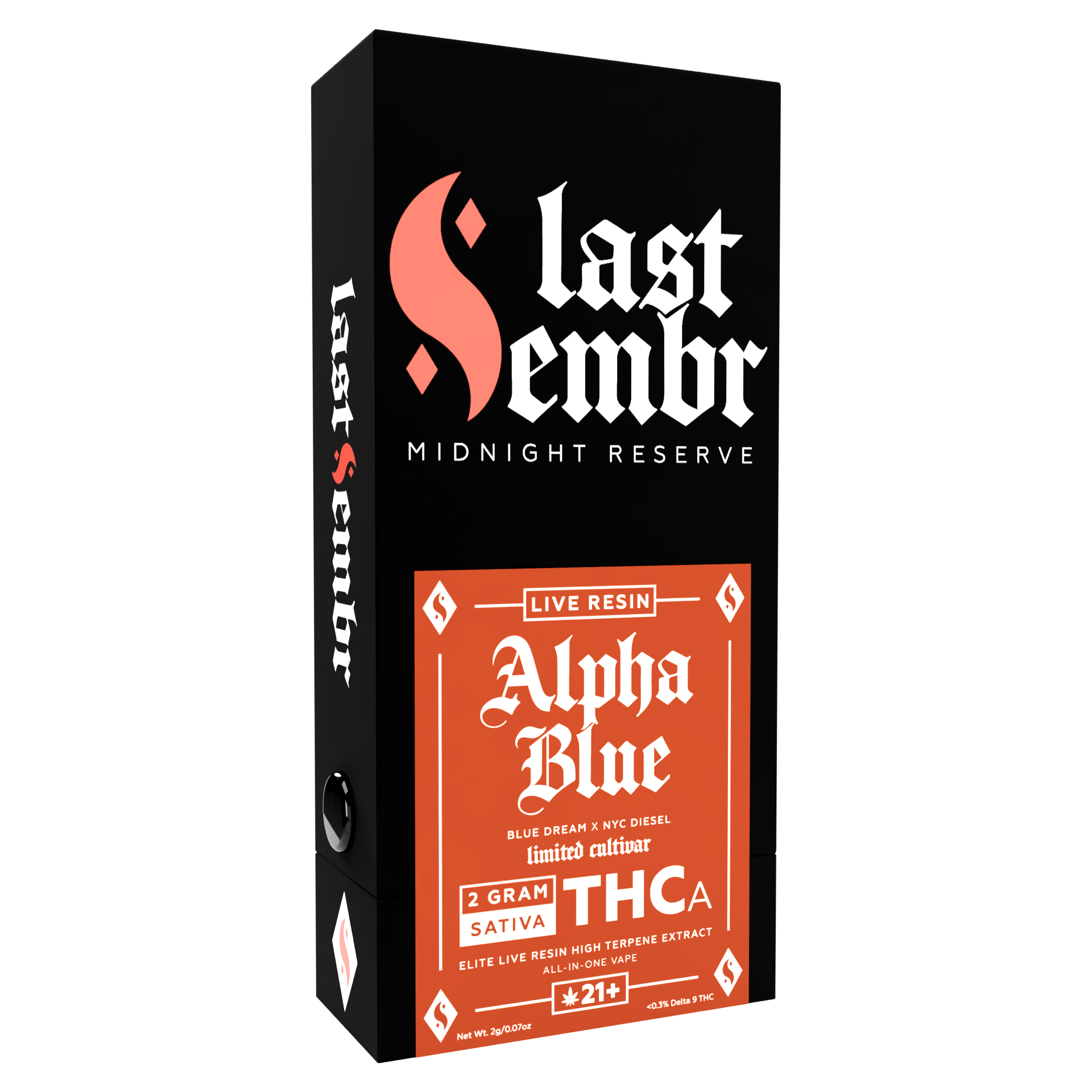 Last Embr Alpha Blue Live Resin Disposable delivers a smooth berry-forward profile featuring sweet blueberry notes with hints of citrus and light earth. The live resin extraction preserves the strain’s natural terpene balance, offering a clean and flavorful vape.