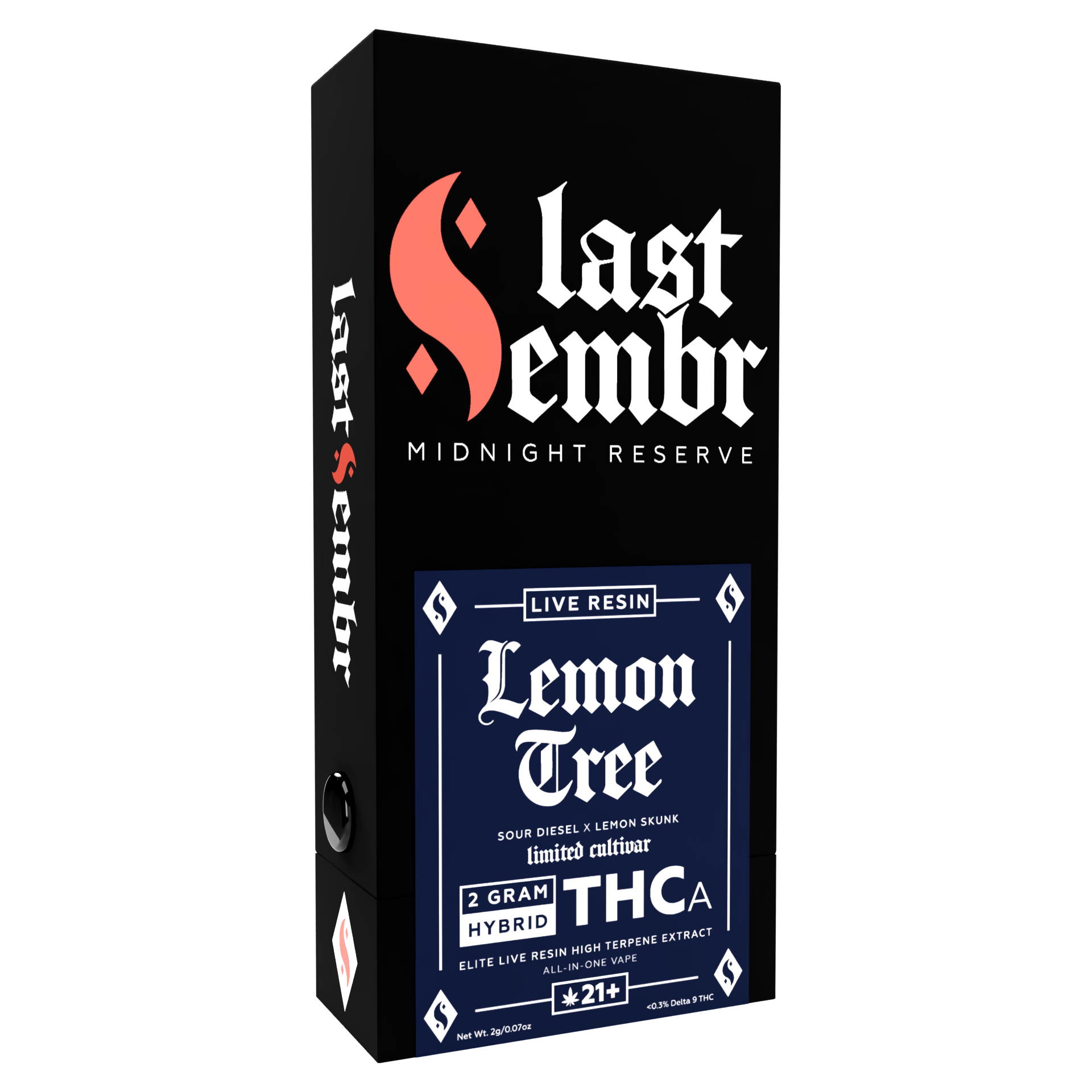 Last Embr Lemon Tree Live Resin Disposable highlights a bright citrus profile led by sharp lemon zest and subtle sweetness. The live resin extraction preserves its vibrant terpene profile, delivering a clean and flavorful vape in a ready-to-use format.