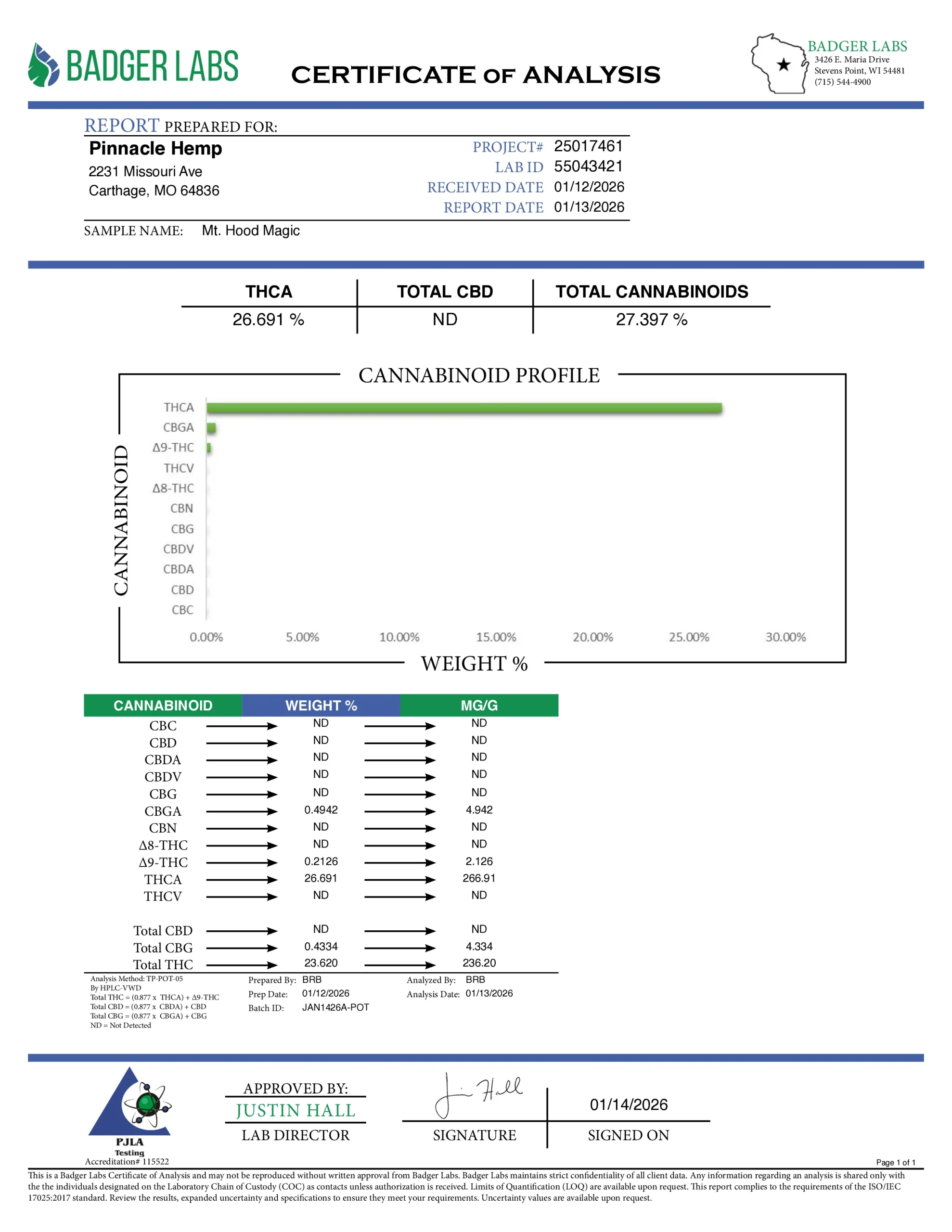 Mount Hood Magic is a balanced hybrid known for its clean, earthy profile layered with pine and light citrus notes. The aroma carries a fresh, forest-like character, blending herbal depth with subtle brightness for a classic terpene expression.