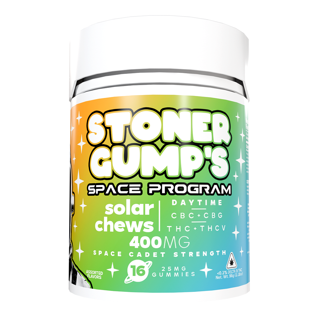 Start your day like a true Space Cadet with Stoner Gump’s Solar Chews. Packed with Delta-9 THC, THCV, and supportive cannabinoids (CBC + CBG), these gummies bring bright, uplifting energy and smooth daytime vibes. Designed for clarity and good feels, they’re your fuel to stay elevated and steady as you orbit through the day.
